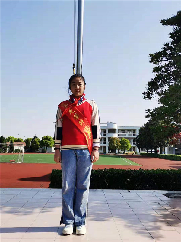 本周优秀升旗手简介:担任本周升旗手的是五(2)中队的徐子玥同学,在校她担任着大队长的职务,在中队同时兼任着语文课代表,作为队干部,她一直以身作则,起到很好的榜样示范作用。在班级中,她能积极热心的帮助同学们解决好难题,也能帮助老师们处理好各项事务。在生活中她热爱劳动,并能帮助父母分担家务。学习成绩优异的她在校级运动会、英语小达人、区级美丽汉字比赛中多次获得一二等奖,她相信,只有有一份付出,就一定会收获成长!