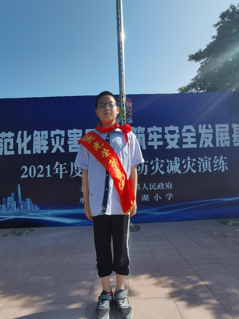 本周优秀升旗手简介:担任本周升旗手的是四(2)中队的张宇轩同学,作为中队里的小队长,他是个有主见,阳光又活泼的男孩,他喜欢思考,爱动脑筋,学习一直很有优异。课堂上总能听到他精彩的发言,回答问题也是头头是道。平时他喜欢课外书籍,课外知识很丰富,也是班级里的百科书,课余之时能热心帮助他人。他喜欢数学,爱思考难题,在学校的数学周活动中,他以优异的表现还获得了“校园数学小达人”称号。