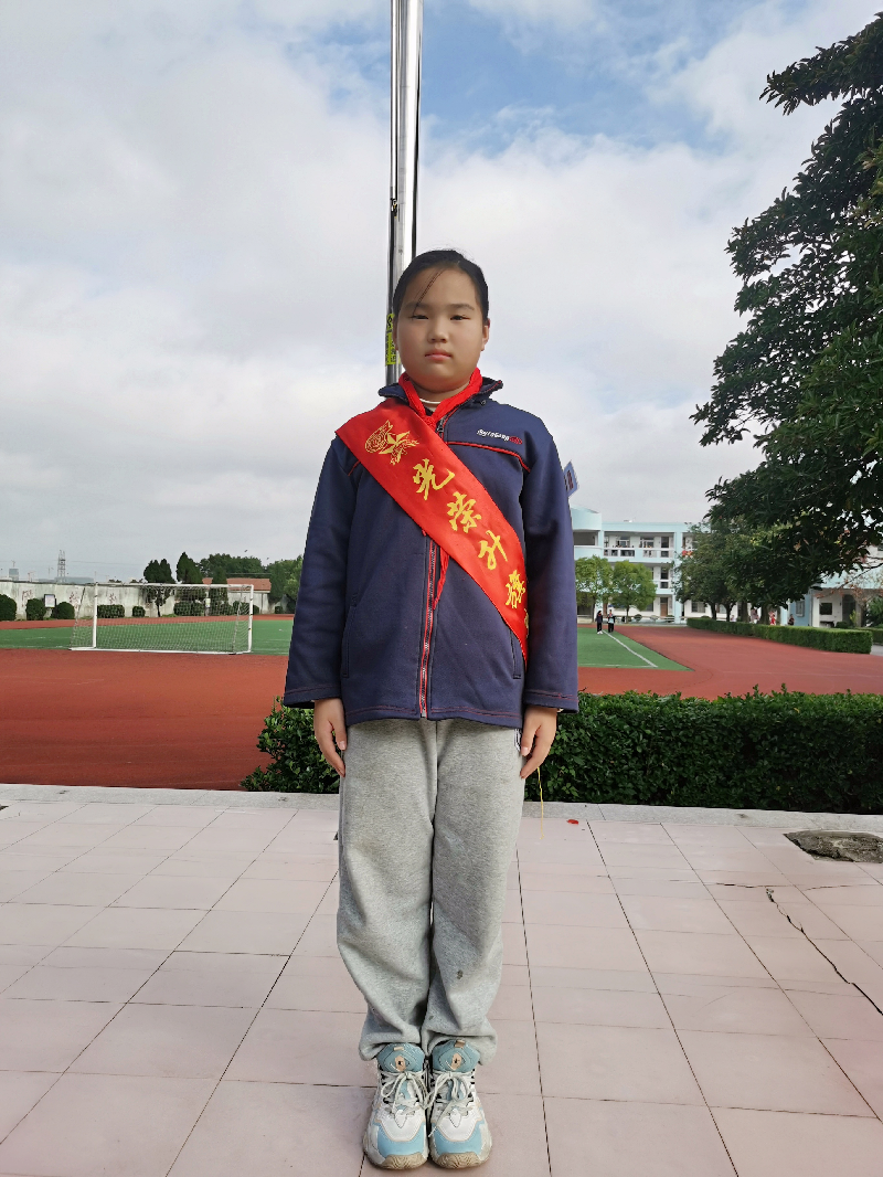 本周优秀升旗手简介:担任本周优秀升旗手的是五(1)中队的陆诗语同学,她是一个热情开朗,积极向上的阳光女孩。在校,她能尊敬师长,团结同学,学习中的她勤学刻苦,各项成绩一直优异。作为班级里的中队委员和大队干部,她在各项工作中的都能做到以身作则,用更高的标准来约束自己,给同学们树立了好榜样,在帮助他人的同时她的各项能力也得到了锻炼。课余她兴趣爱好广泛,平时喜欢读书、运动等,并能积极参与学校组织的各项活动,都取得了不错的成绩,全面发展的她一直也是大家学习的好榜样。