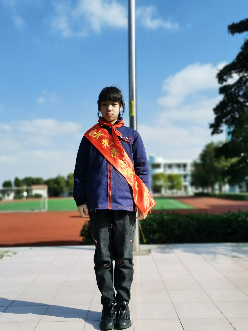 本周优秀升旗手简介:担任本周升旗手的是四(1)中队的费莉沙同学,她是一个活泼开朗、自信大方的队员。学习中的她勤奋自律,积极向上,成绩一直名列前茅。课余她兴趣爱好广泛,喜欢唱歌、画画和弹琴,在校她能积极参与学校社团和校外各项活动,并取得了不错的成绩。在生活中她也乐于帮助同学,帮助他们克服困难、解决困难,一直以来她是老师们的好帮手,也是同学们公认的好榜样。