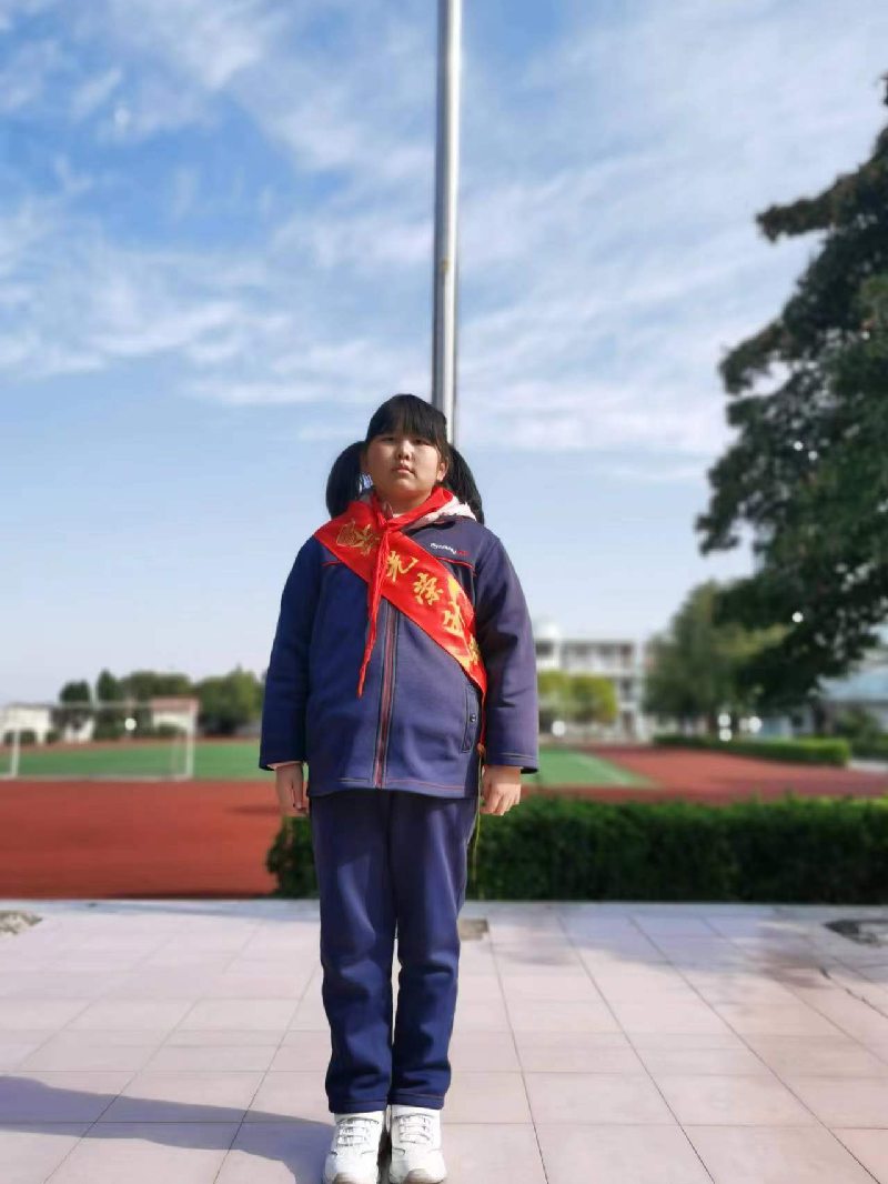 本周优秀升旗手简介:担任本周升旗手的是四(1)中队的周尚琪同学,她是一个热情开朗、品行优良的队员。学习中的她积极向上,刻苦努力,自我约束能力极强,她经常会用自己的行动感染身边的同学,帮助大家一起进步。生活中的她勤俭简约,从不浪费,在家也能积极孝敬父母。在校她热爱班集体,能很好团结同学,尊敬师长,并积极做好老师们小帮手,热情开朗的她是大家的知心好朋友,也是大家学习的榜样。