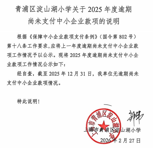 青浦区淀山湖小学关于2025年度逾期 尚未支付中小企业款项的说明