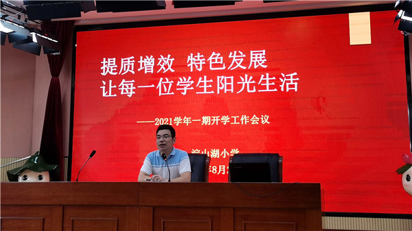 8月27日上午,淀山湖小学召开2021学年度第一学期全体教师大会,本次会议主题为“提质增效 让每一位学生阳光生活”。