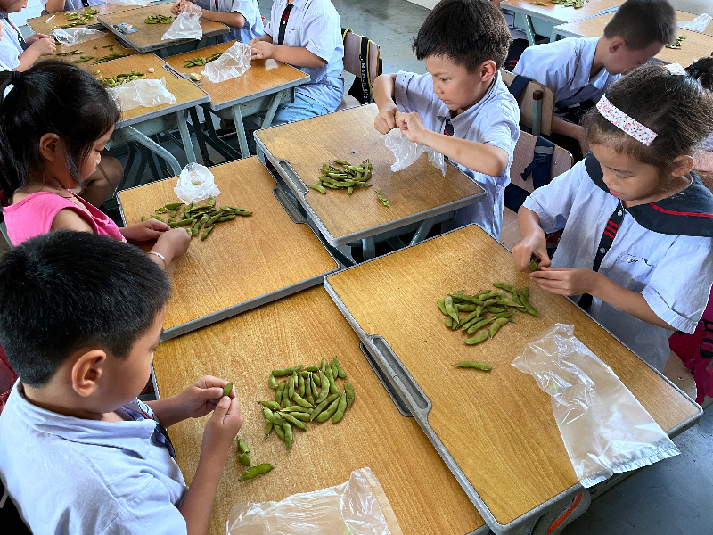 低年级组围绕中秋节的起源、传统民俗、逸闻趣事、诗歌词赋等通过主题队会的形式来了解中秋节。随后,以小队形式开展了“豆你来赛”——剥毛豆比赛。瞧,比赛中的队员们多专注啊,我们个个都是劳动小能手。最后队员们带着自己的劳动果实和家人一起将豆烹饪成各式各样的美食。
