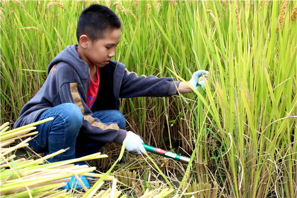 在校外辅导员的指导下,孩子们很快掌握了割稻子的基本方法。他们穿上鞋套,踏进泥泞的水田,有模有样地割了开来,俨然变成了小小的“农夫”。孩子们以前从来没有过下田劳动的经历,通过这次亲身实践,懂得了劳动的艰辛,粮食的来之不易。