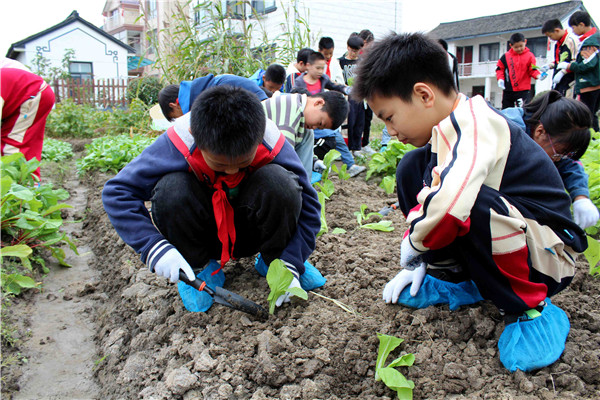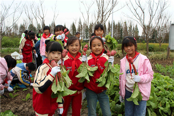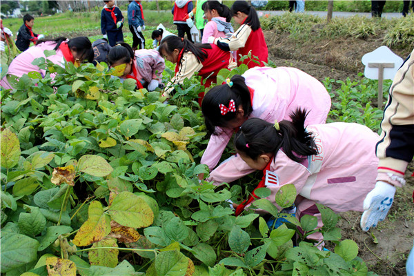 体验完割稻后,队员们又来到“我在莲湖有块田”,在自己中队的区域里收获了毛豆和萝卜,并种上了杭白菜,等待下一次的丰收。