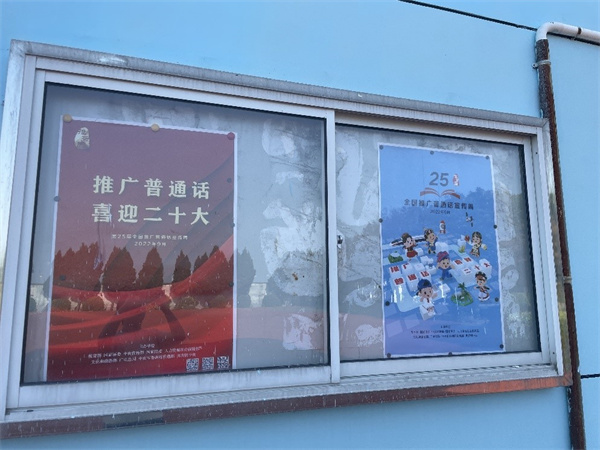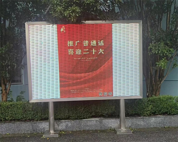 1.学校利用校门口的电子大屏幕对25届推普周宣传片进行滚动播放,把“推广普通话,喜迎二十大”的主题映入了师生心中。