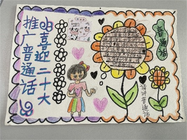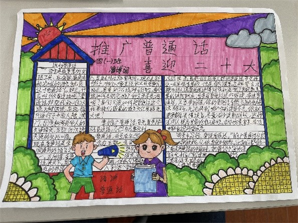 4.班主任老师指导学生完成推普主题的黑板报、制作推普小报,营造出浓浓的推普周气氛。