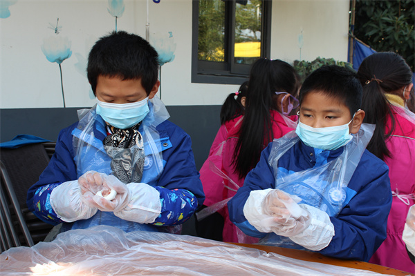 “吃汤团咯!”随着一声吆喝声,一碗碗热腾腾的汤圆端上来时,孩子们都争先恐后品尝自己的劳动果实,“瞧,我做的这个汤团肉馅好大,一口咬下去全是肉”“我自己做的汤团真好吃”……品完汤团的莲娃们脸上都洋溢着满足的笑容。