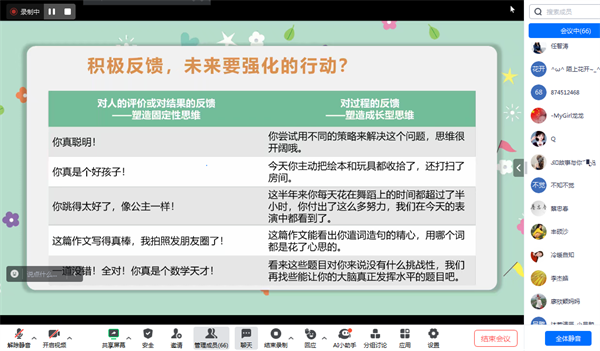 任老师分享的主题是“成长新起点,养成新习惯”。在如何激发孩子学习兴趣部分,任老师建议家长趁着新学期开始,跟孩子一起探讨新学期的目标,还强调一个好的目标要符合SMART原则;确定了目标,在执行的过程中还需要家长给予孩子有效的及时的反馈,无论是积极反馈还是消极反馈都要着眼于未来,能够帮助孩子成长;同时,家长们也要多观察、询问和了解孩子,帮助孩子设定合适的难度并分解目标,让孩子有信心、有毅力实现自己的目标。