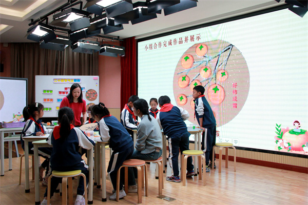 在课程展示环节,与会者聆听了两节示范课:一节是三年级数学集体课《轴对称图形》,另一节是资源教室小组课《二十四节气之好“柿”成“霜”》。这两节课不仅展示了淀山湖小学在一般课程和特设课程中对于评估结果恰当运用的思考,也体现了融合教育课程教学的多样性和个性化。