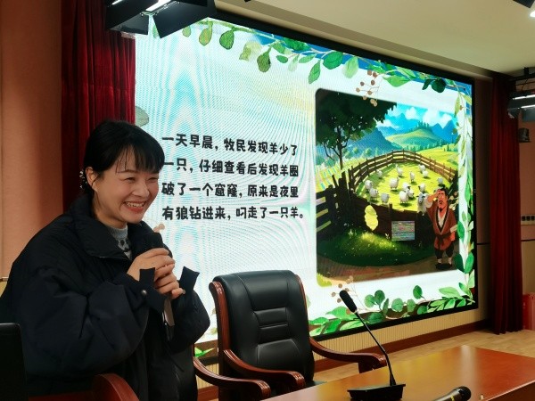 一、二年级的小朋友们率先迎来了特殊的 “老师”—— 权昊越妈妈!她带来的是大家耳熟能详的寓言故事《亡羊补牢》。权昊越妈妈讲得绘声绘色,一会儿模仿牧民着急的语气,一会儿学着小羊“咩咩”叫,生动的讲述让孩子们听得眼睛都不眨一下,一个个坐得笔直,小脑袋跟着故事节奏转不停。故事刚讲完,有奖提问环节就来啦!“牧民第一次丢羊后没补羊圈,第二次丢羊后怎么做了呀?”“这个故事告诉我们犯了错误要怎么样呀?”权昊越妈妈的问题刚出口,孩子们的小手就齐刷刷举得高高的,有的甚至踮着脚尖抢答,课堂瞬间变成了“答题小赛场”。权昊越看着妈妈站在讲台上,脸上满是自豪,回答问题也格外积极,还主动帮妈妈给答对的小伙伴发奖品,拿到小礼物的小朋友们笑得合不拢嘴,都说明白了 “犯了错及时改正就不算晚” 的道理。