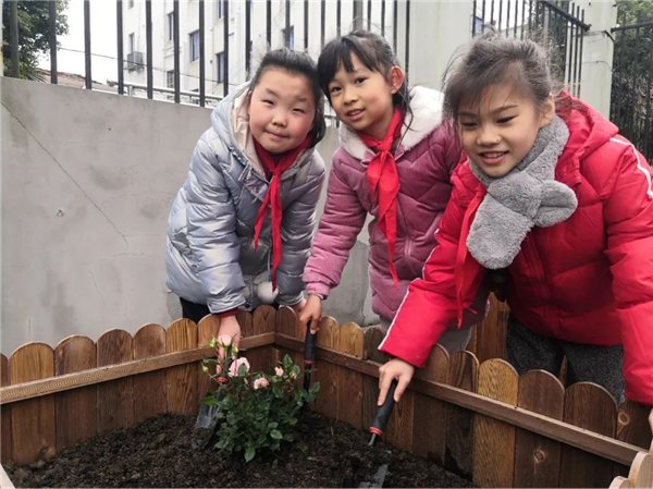 到处都是忙碌的身影和劳动的欢声笑语……不一会,经过队员们的精心种植,姹紫嫣红的绿植将校园装扮得春意盎然。