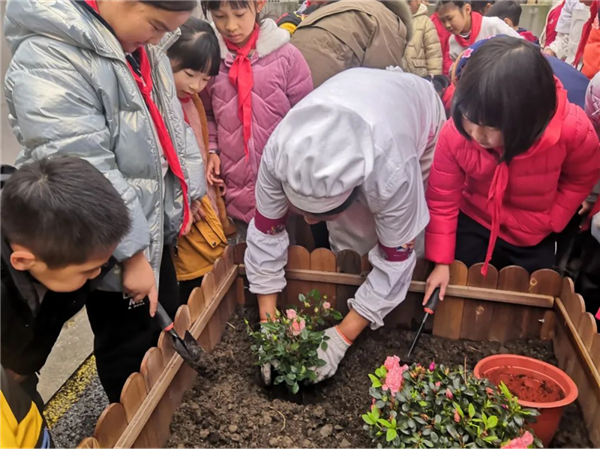 阳春三月,又逢桃红柳绿时,为了给校园添一抹色彩,让校园更加生机盎然,3月12日植树节当天,学校大队部发动全校各中队以“一米阳光菜园”为种植基地,开展“绿色阳光伴我行”花卉种植劳动体验活动。