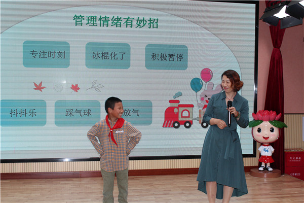 随后,任老师通过精彩的动画片段、生动的例子带领孩子们认识情绪以及情绪的类型,用通俗易懂的语言解释情绪的来源,并通过互动的形式,让学生现场表达自己的情绪。