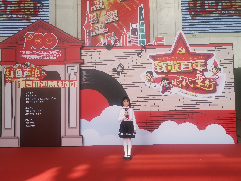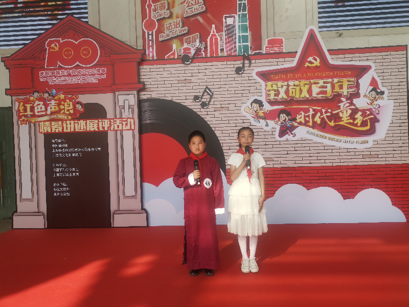 “致敬百年时代‘童’行”——上海少年儿童‘红色声浪’情景讲述展评活动”是由上海市精神文明建设委员会办公室、上海市文化和旅游局、中国福利会主办,中国福利会少年宫和上海市群众艺术馆联合承办。