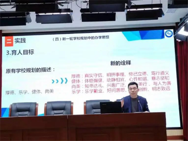 ●朱轶峰副校长就学校校本研修体系及教研组、学科组工作方案讨论稿向全体教师进行了介绍。在重新调整后的校本研修体系中,学科组研修着重开展文本学习、理论研究,教研组研修则侧重备课、三实践两反思的课堂授课,由此理论、实践两手抓,争取两手硬,使学校的教学质量稳步提升,教师研修能力更上一个台阶。